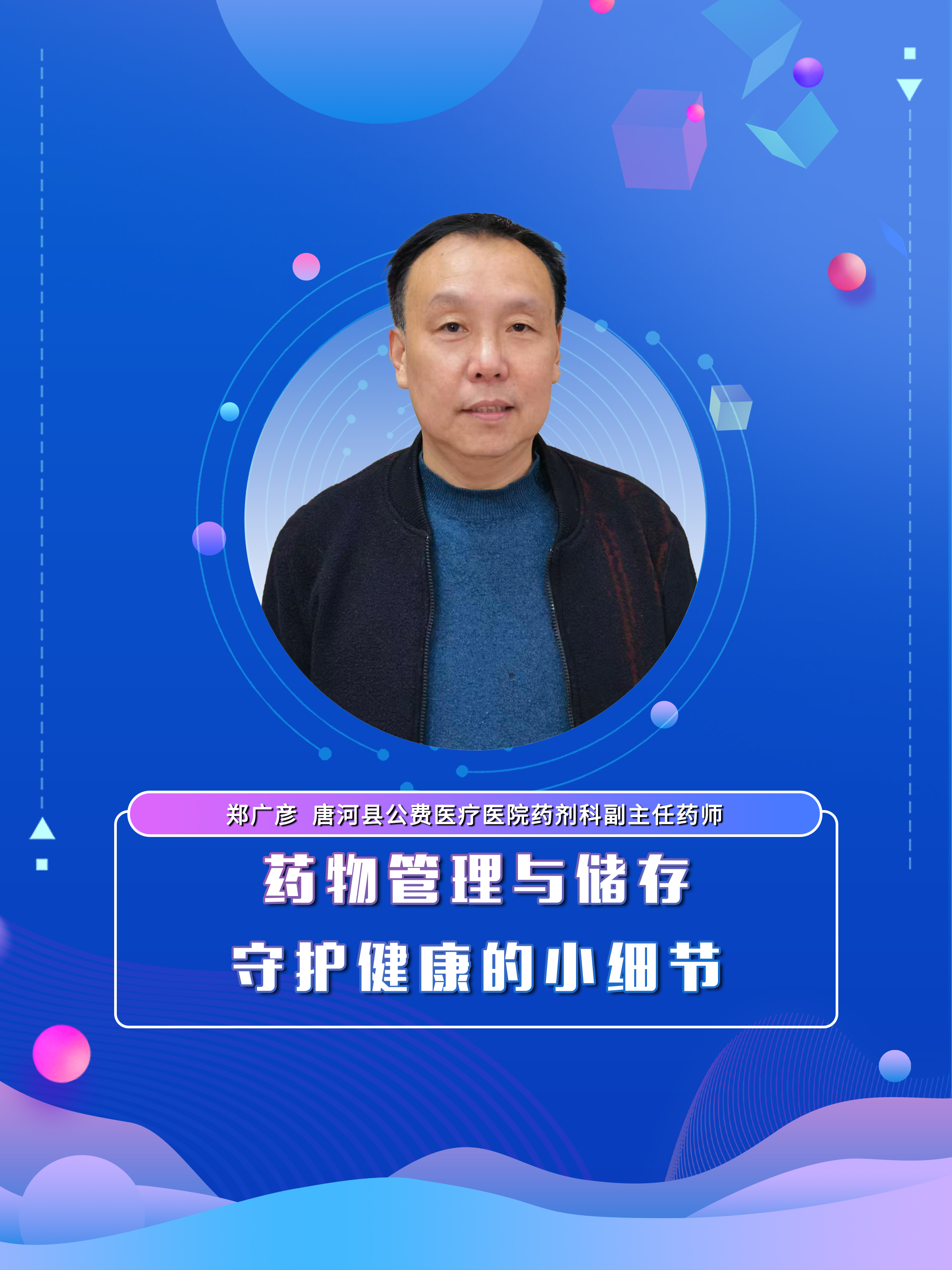 【药物管理与储存 守护健康的小细节】科普专家:郑广彦 唐河县公费医疗医院药剂科副主任药师