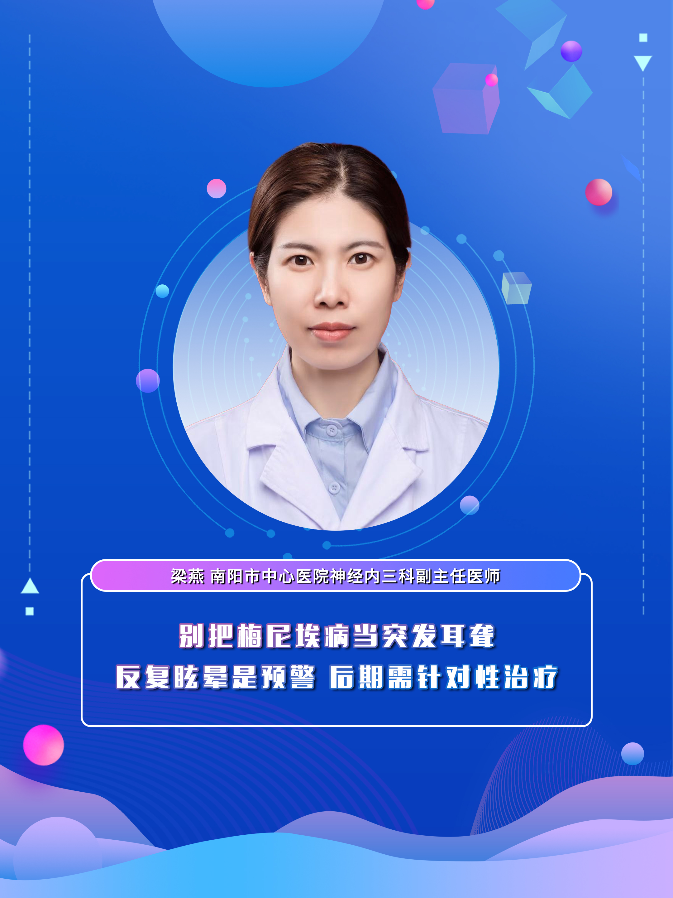 【别把梅尼埃病当突发耳聋反复眩量是预警 后期需针对性治疗】科普专家:梁燕 南阳市中心医院神经内三科...