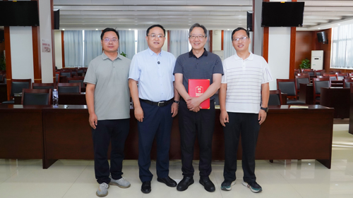 河南省中医院副院长赵旭为中山医学大学医学研究所魏正宗教授颁发聘书