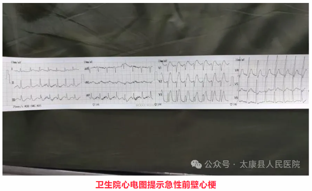 然而,危机并未完全解除。患者恢复自主心跳和呼吸后,负责救治的杨伟博医生给予患者心电图检查并第一时间上传太康县胸痛中心县乡工作群中。