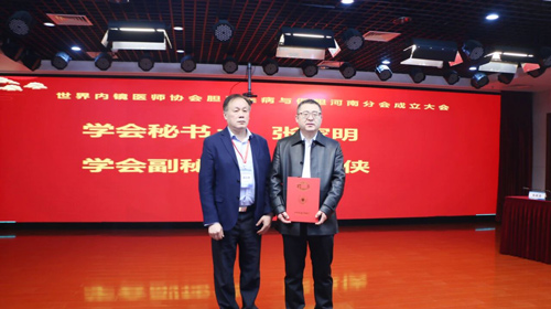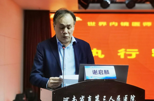 世界内镜医师协会北京代表处代表张海燕宣读批准河南分会成立文件