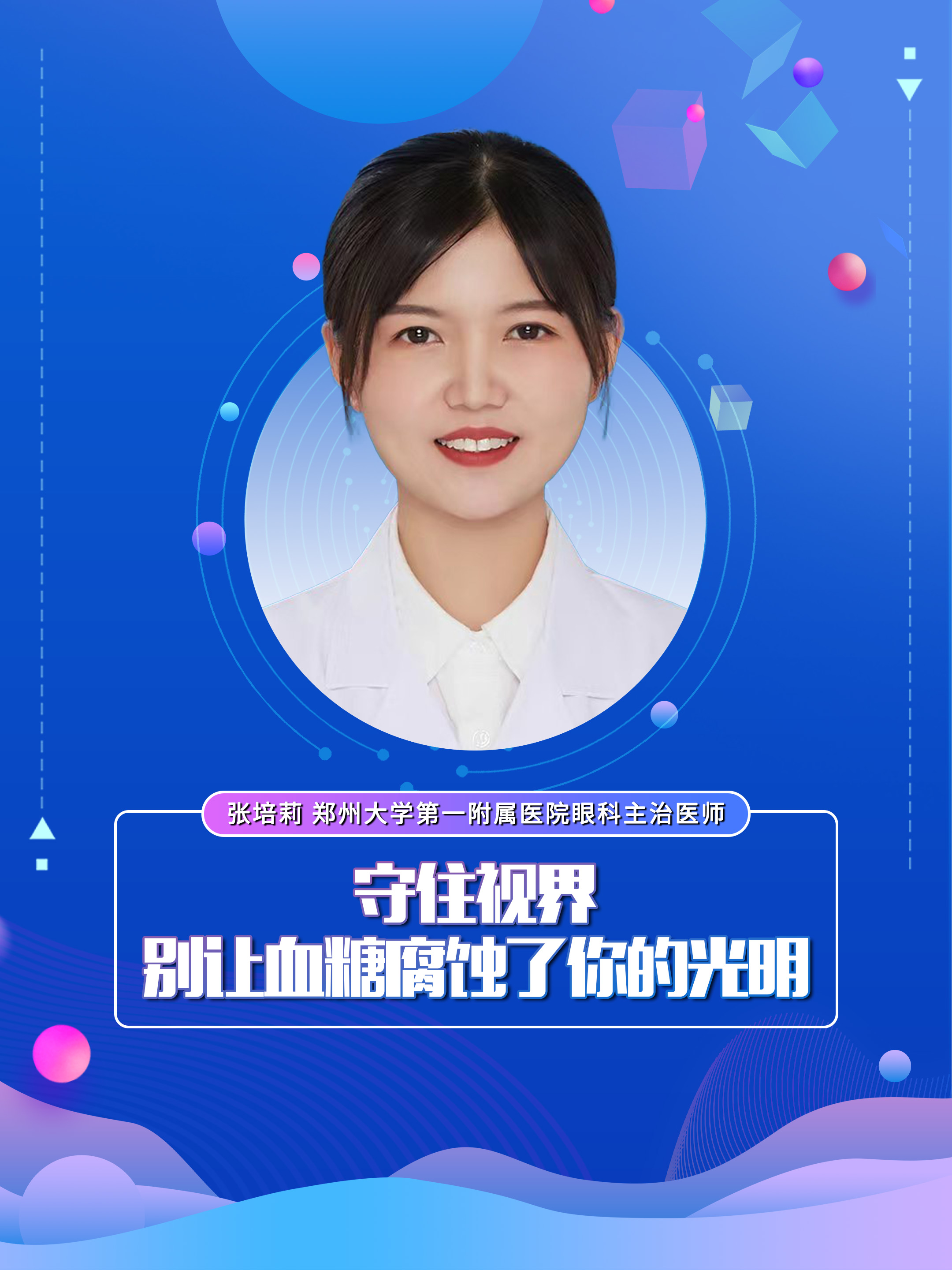 【守住视界 别让血糖腐蚀了你的光明】科普专家:张培莉——郑州大学第一附属医院眼科主治医师