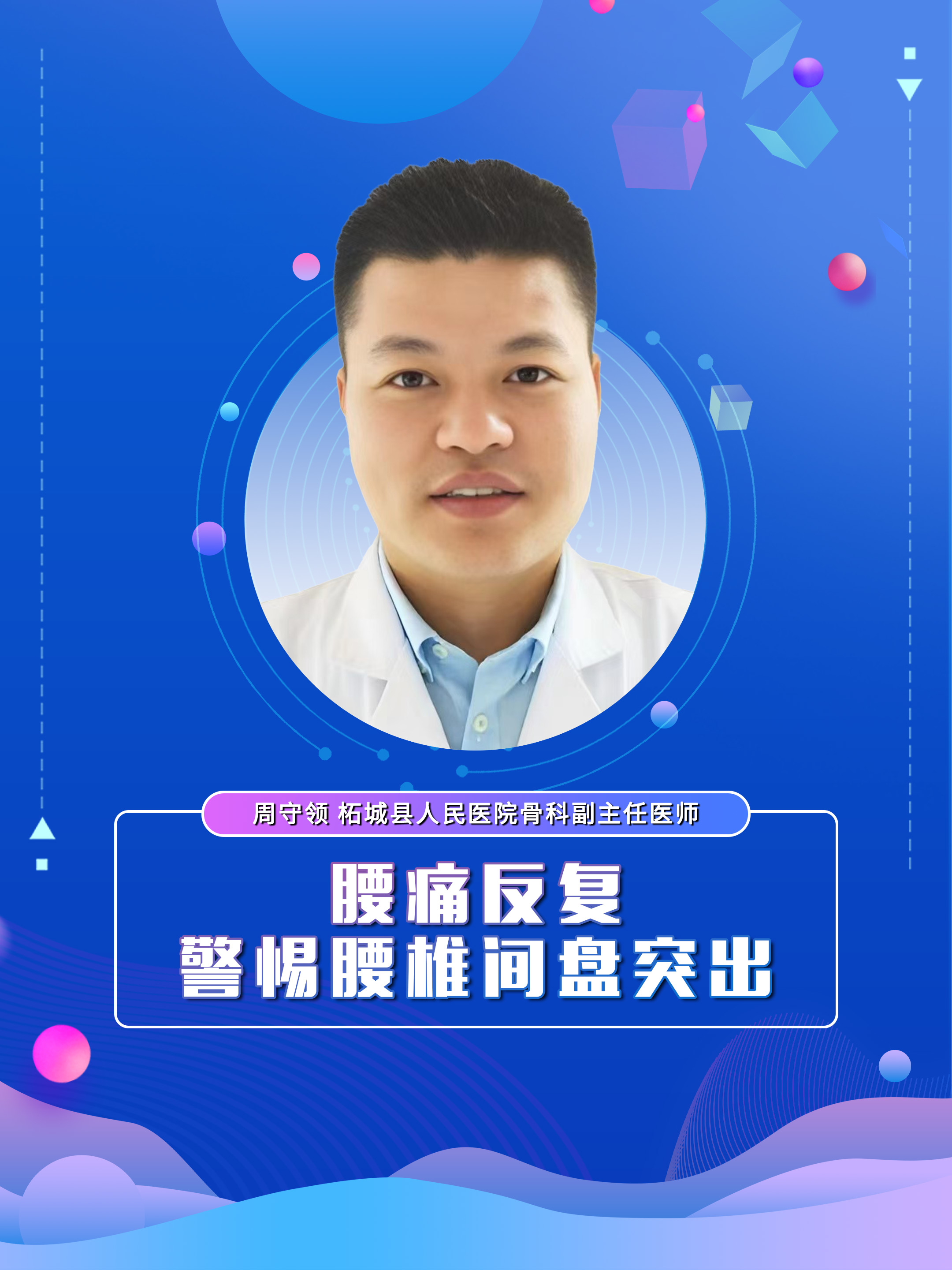【腰痛反复 警惕腰椎间盘突出】科普专家:周守领——柘城县人民医院骨科副主任医师