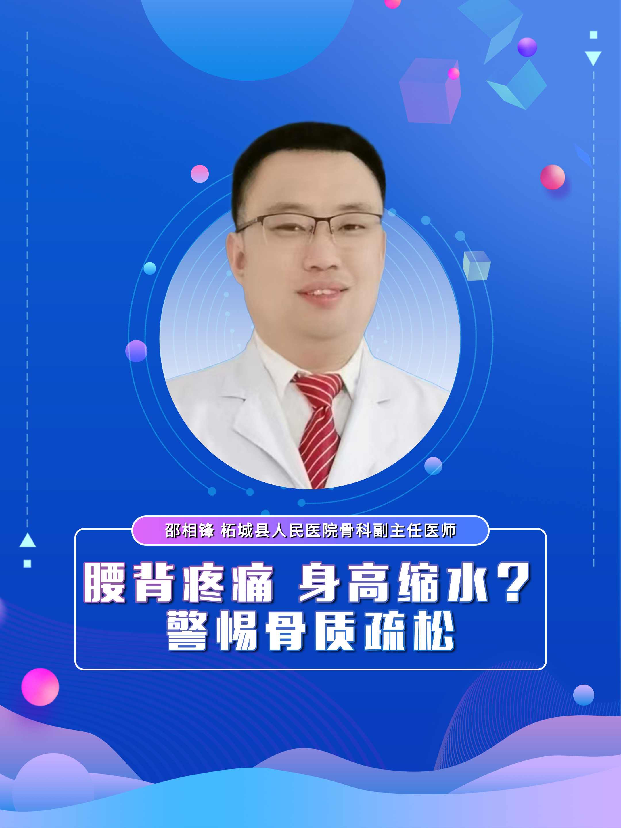 【腰背疼痛 身高缩水?警惕骨质疏松】科普专家:邵相锋——柘城县人民医院骨科副主任医师