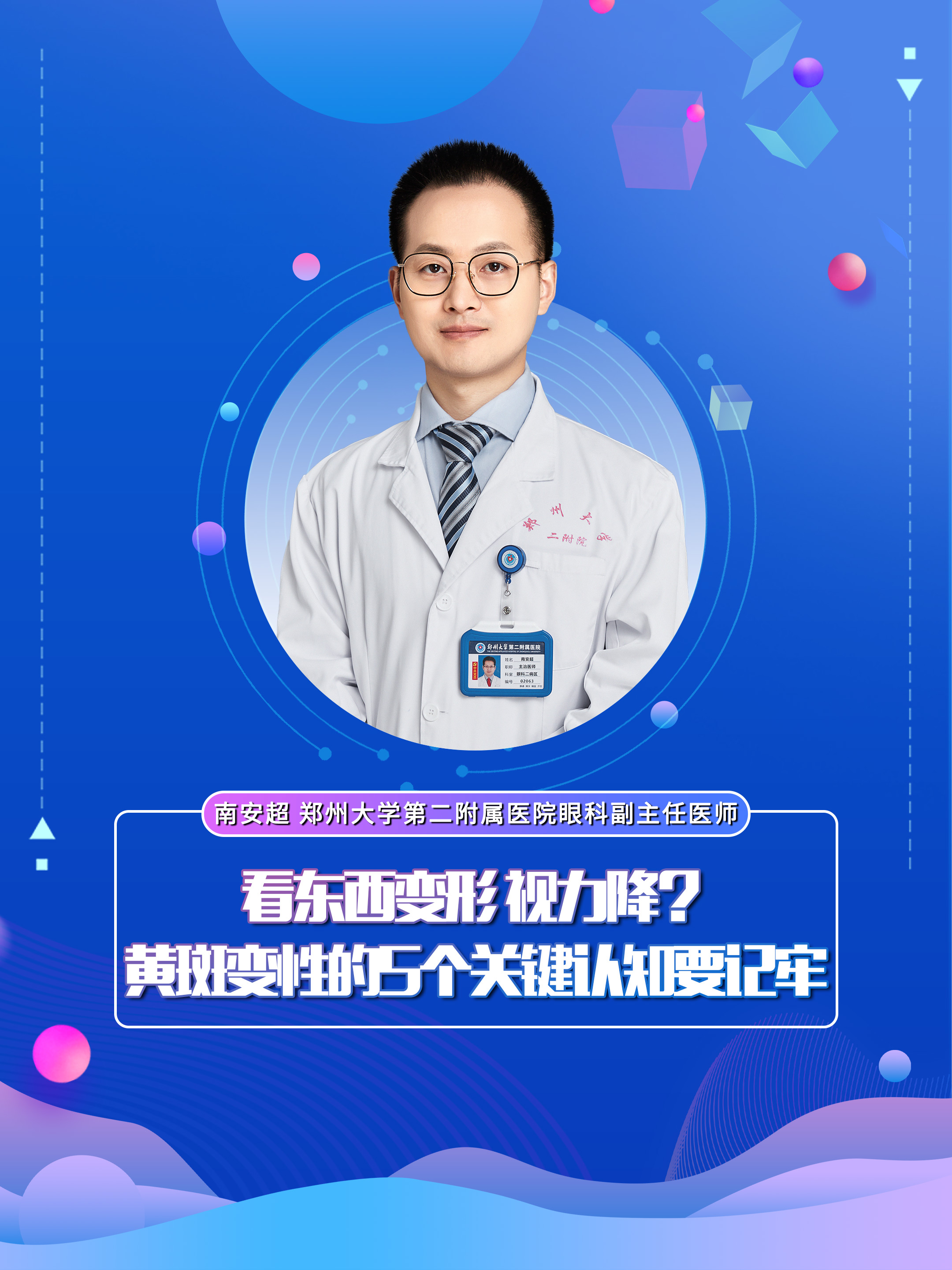 【看东西变形 视力降?黄斑变性的5个关键认知要记牢】科普专家:南安超——郑州大学第二附属医院眼科副...