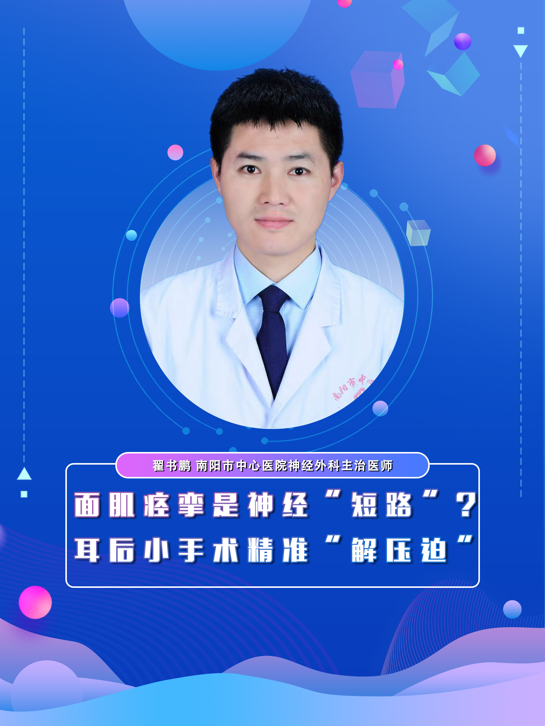 【面肌痉挛是神经-“短路”?耳后小手术(微血管减压术)精准-“解压迫”】科普专家:翟书鹏 南阳市中心医...