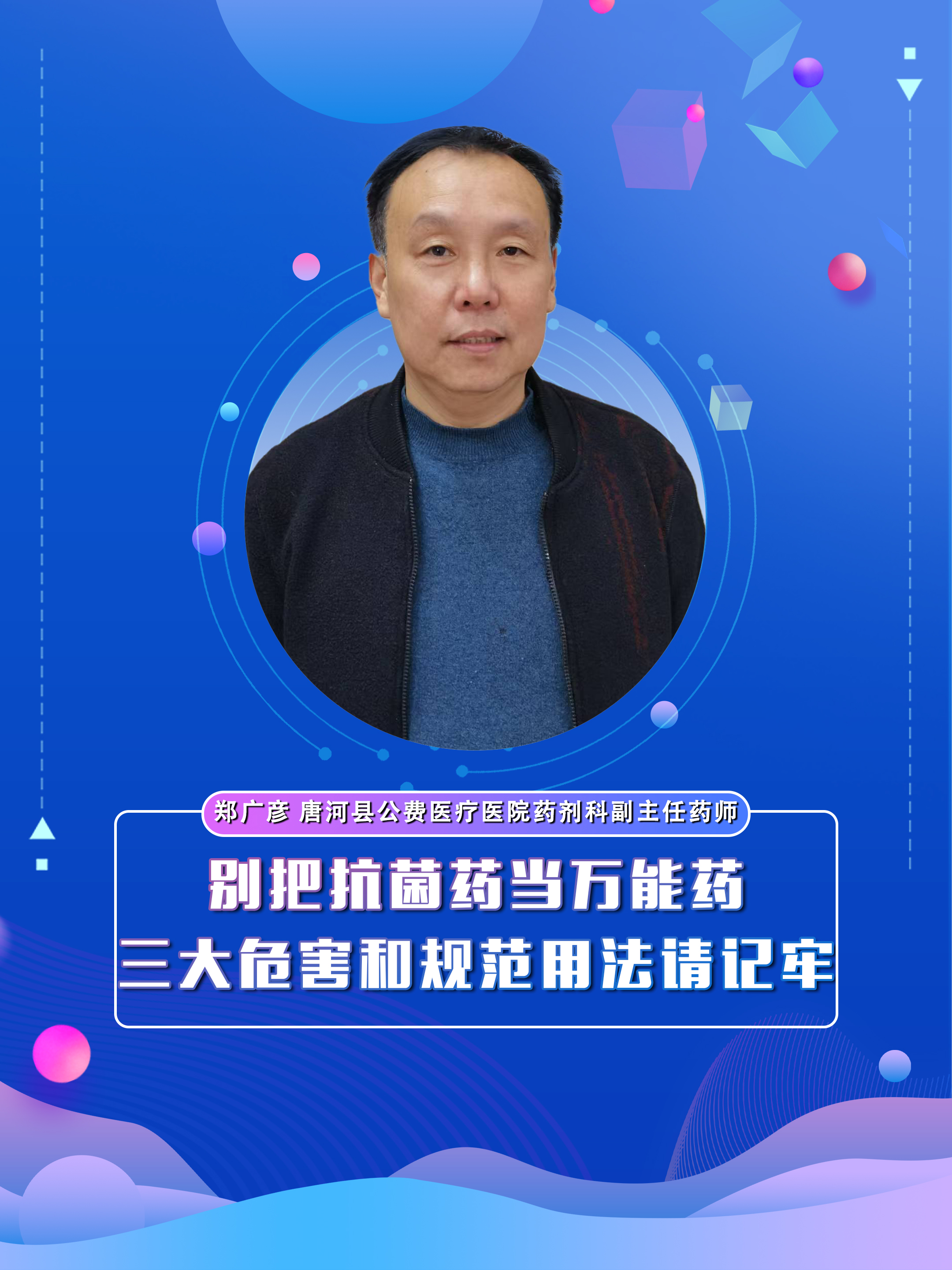 【别把抗菌药当万能药 三大危害和规范用法请记牢】科普专家:郑广彦 唐河县公费医疗医院药剂科副主任药师