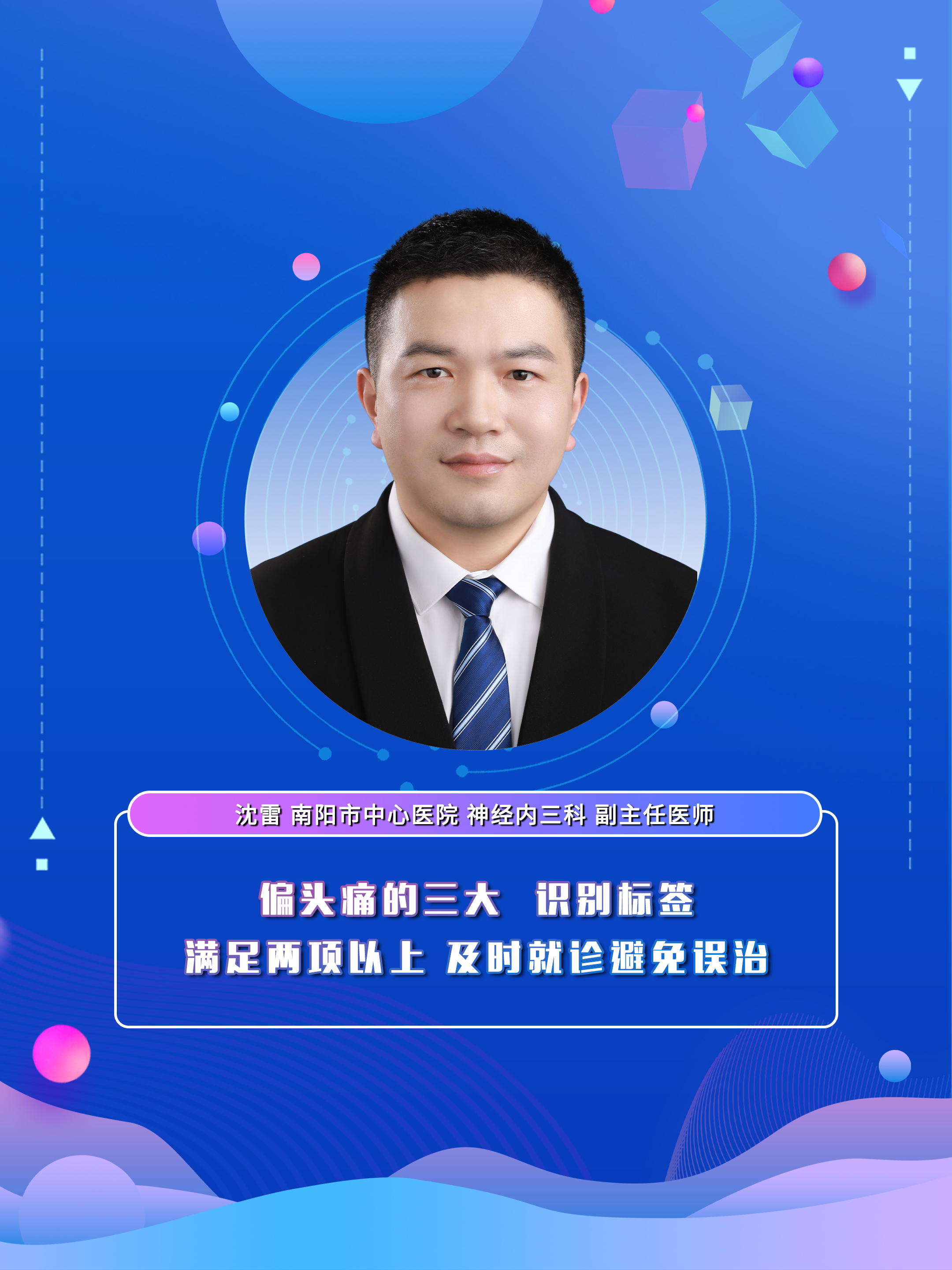 【偏头痛的三大 识别标签满足两项以上 及时就诊避免误治】科普专家:沈雷 南阳市中心医院神经内三科副主...