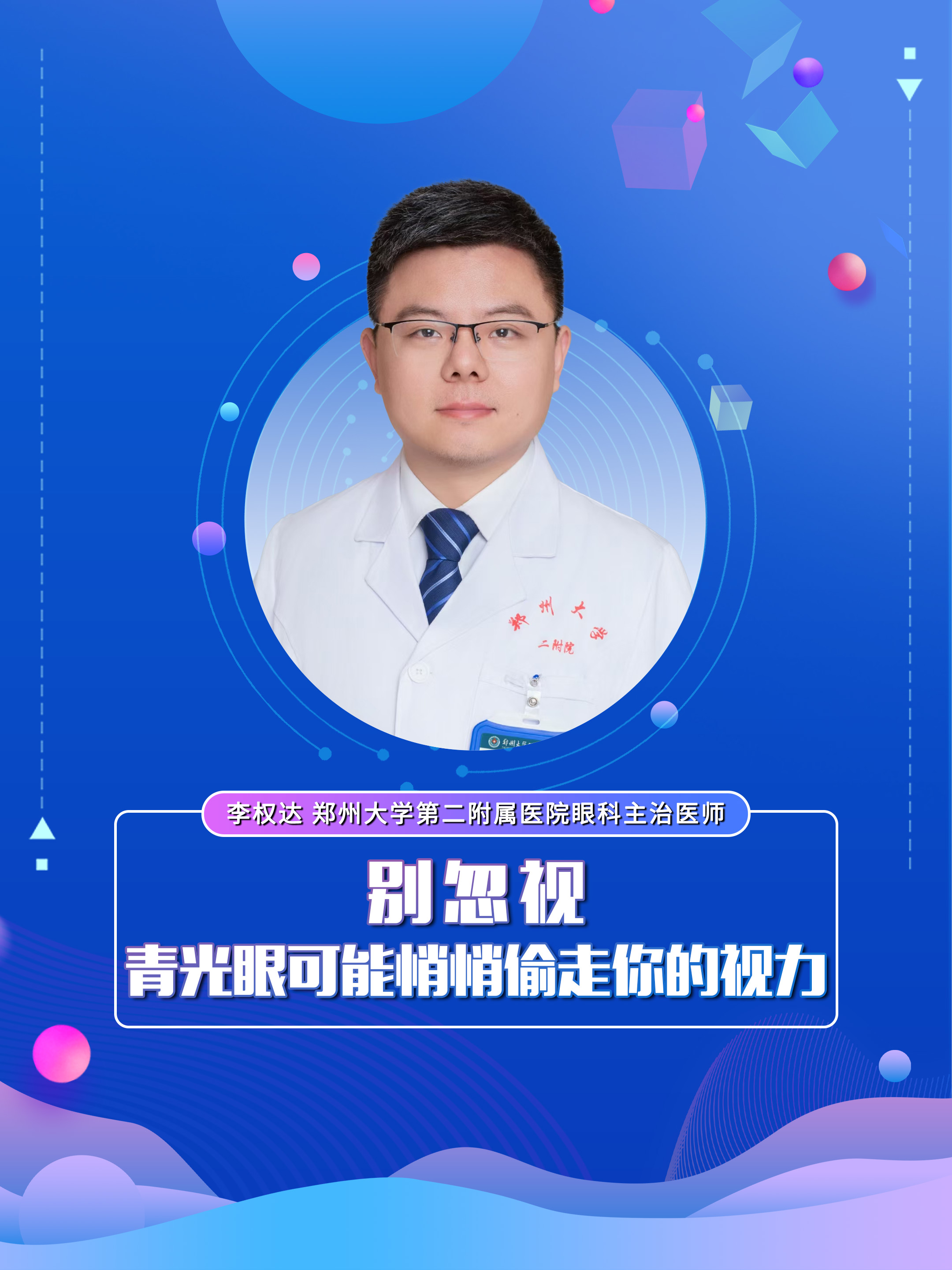 【别忽视!青光眼可能悄悄“偷走”你的视力】科普专家:李权达——郑州大学第二附属医院眼科主治医师