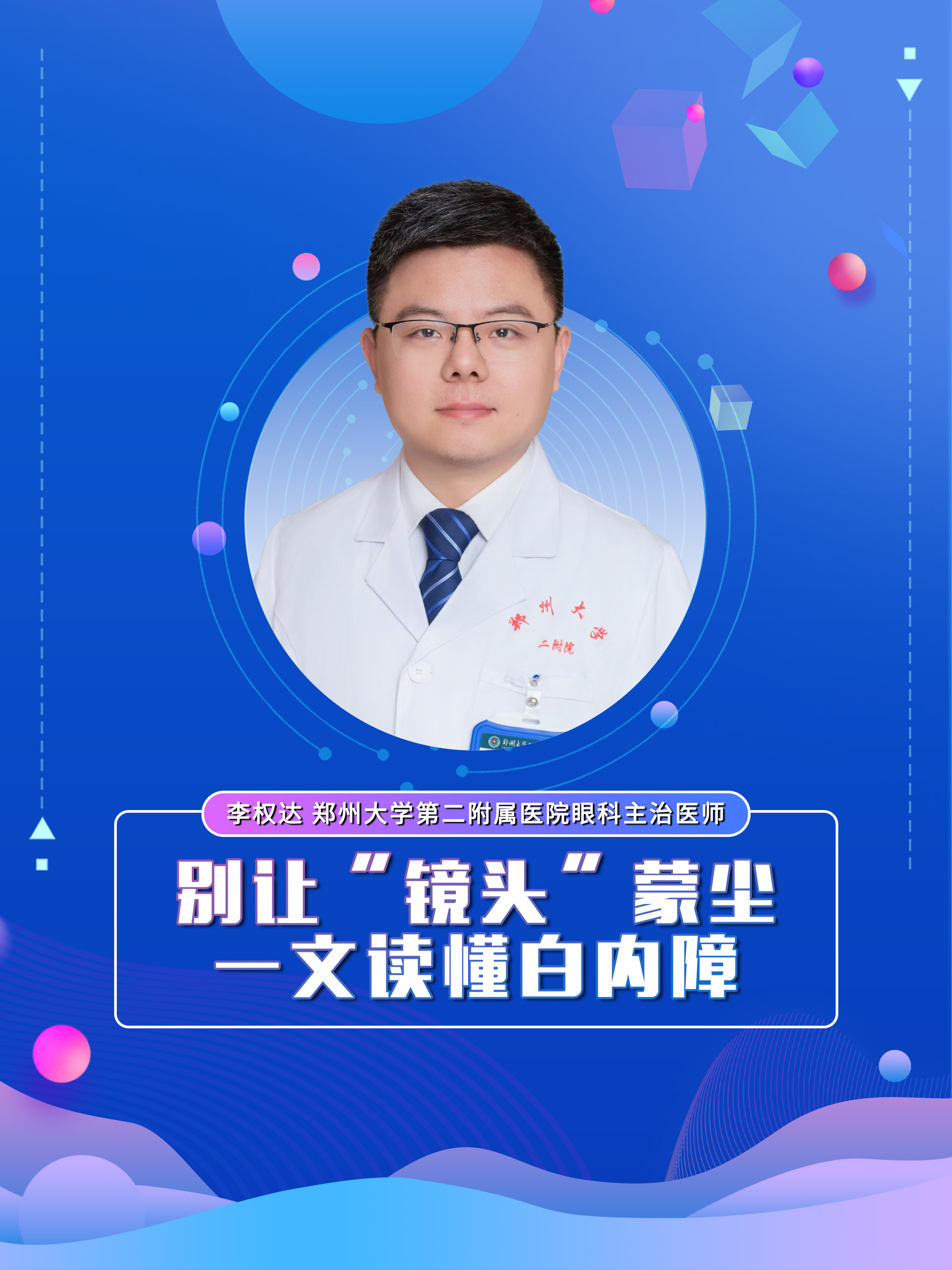【别让“镜头”蒙尘!一文读懂白内障】科普专家:李权达——郑州大学第二附属医院眼科主治医师