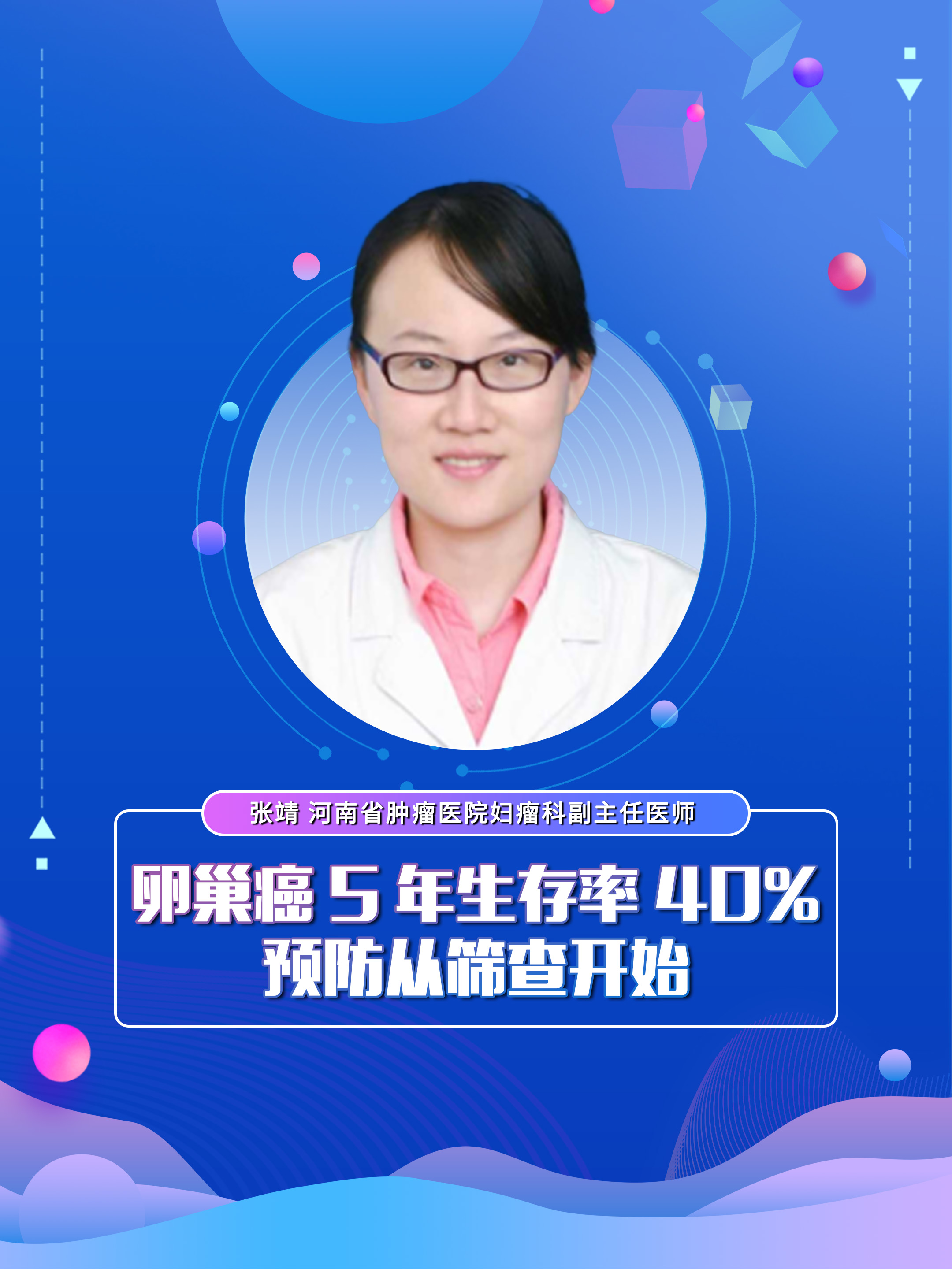 【卵巢癌5年生存率 40% 预防从筛查开始】科普专家:张靖——河南省肿瘤医院妇瘤科副主任医师