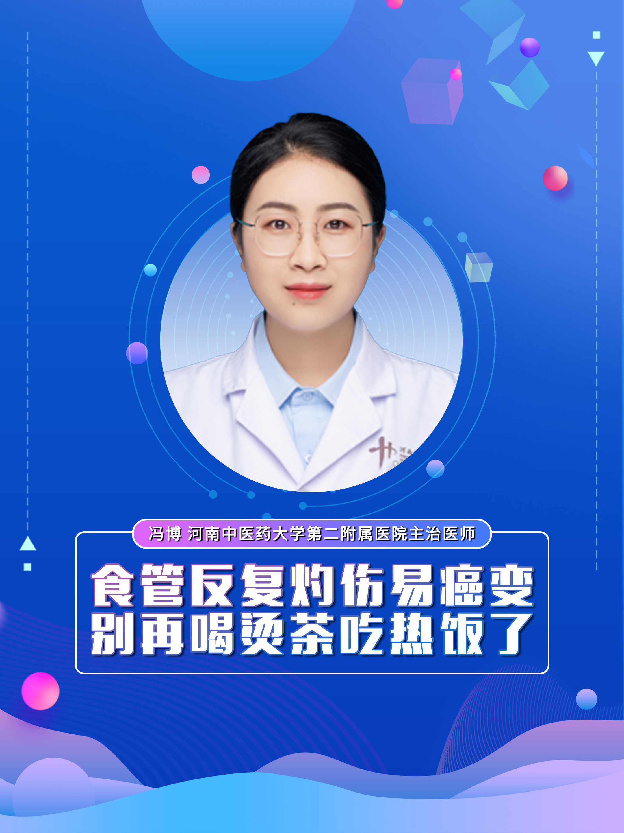 【食管反复灼伤易癌变!别再喝烫茶、吃热饭了】科普专家:冯博——河南中医药大学第二附属医院主治医师