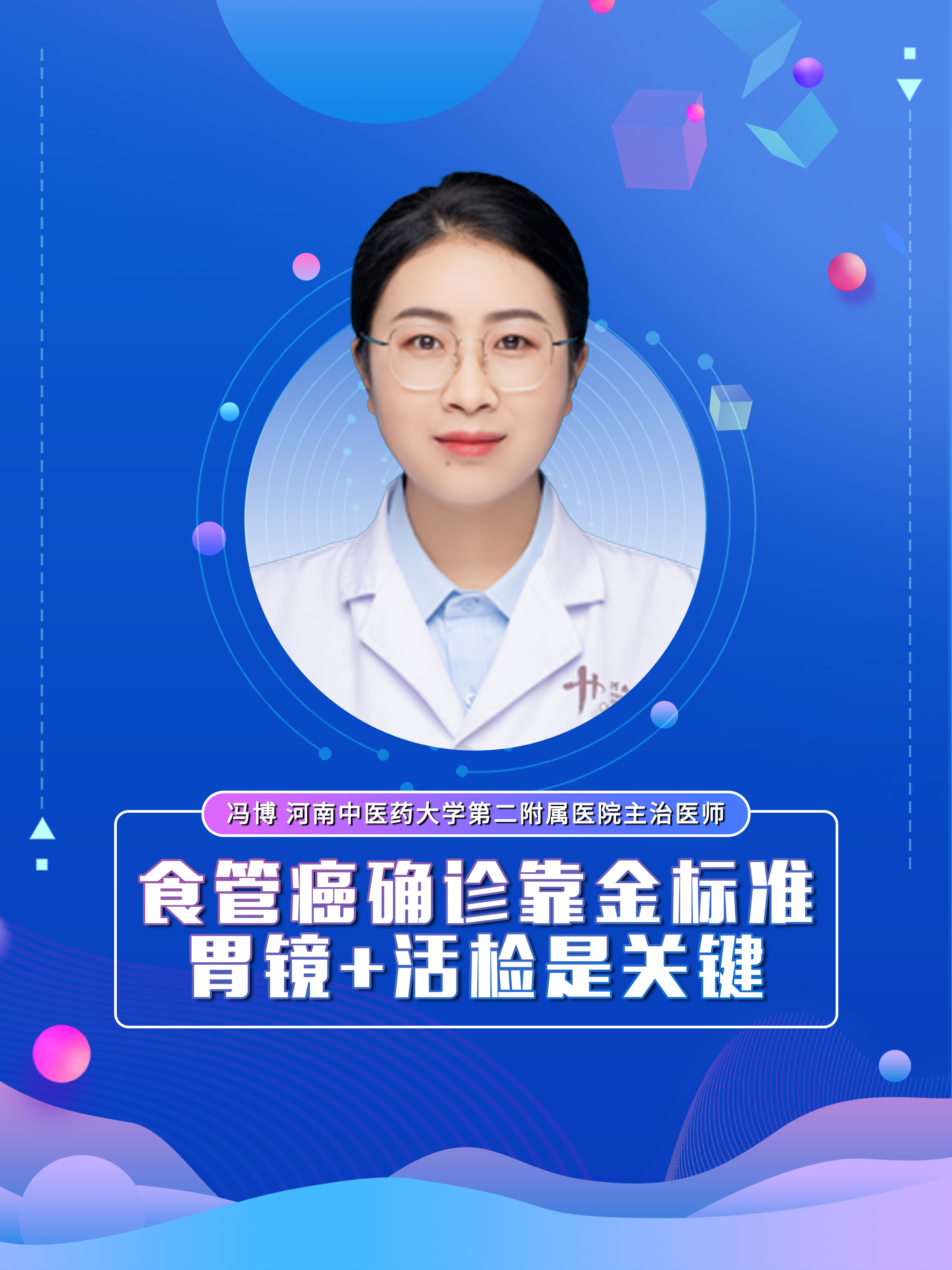 【食管癌确诊靠金标准 胃镜+活检是关键】科普专家:冯博——河南中医药大学第二附属医院主治医师