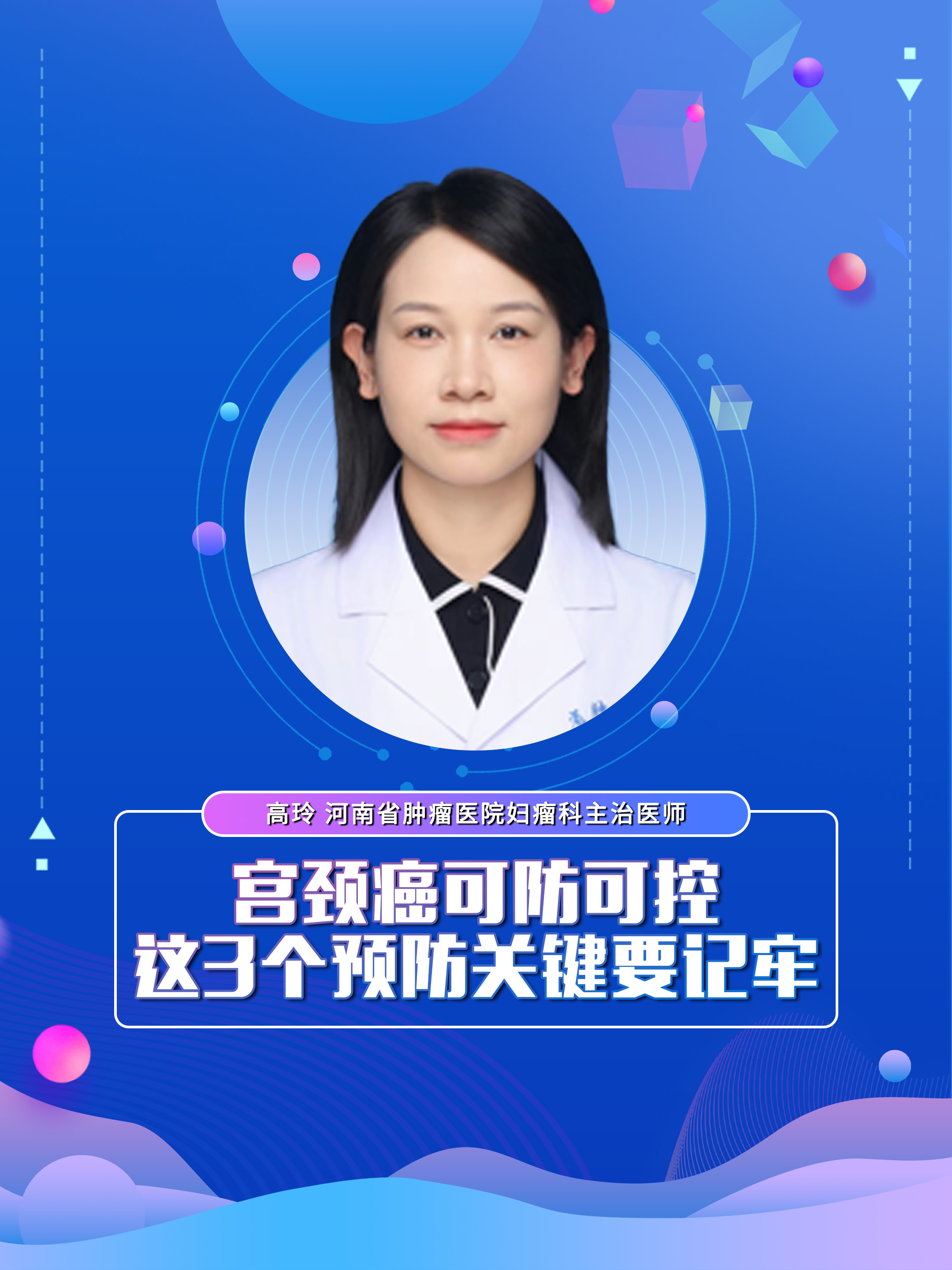 宫颈癌可防可控!这3个预防关键要记牢】科普专家:高玲——河南省肿瘤医院妇瘤科主治医师