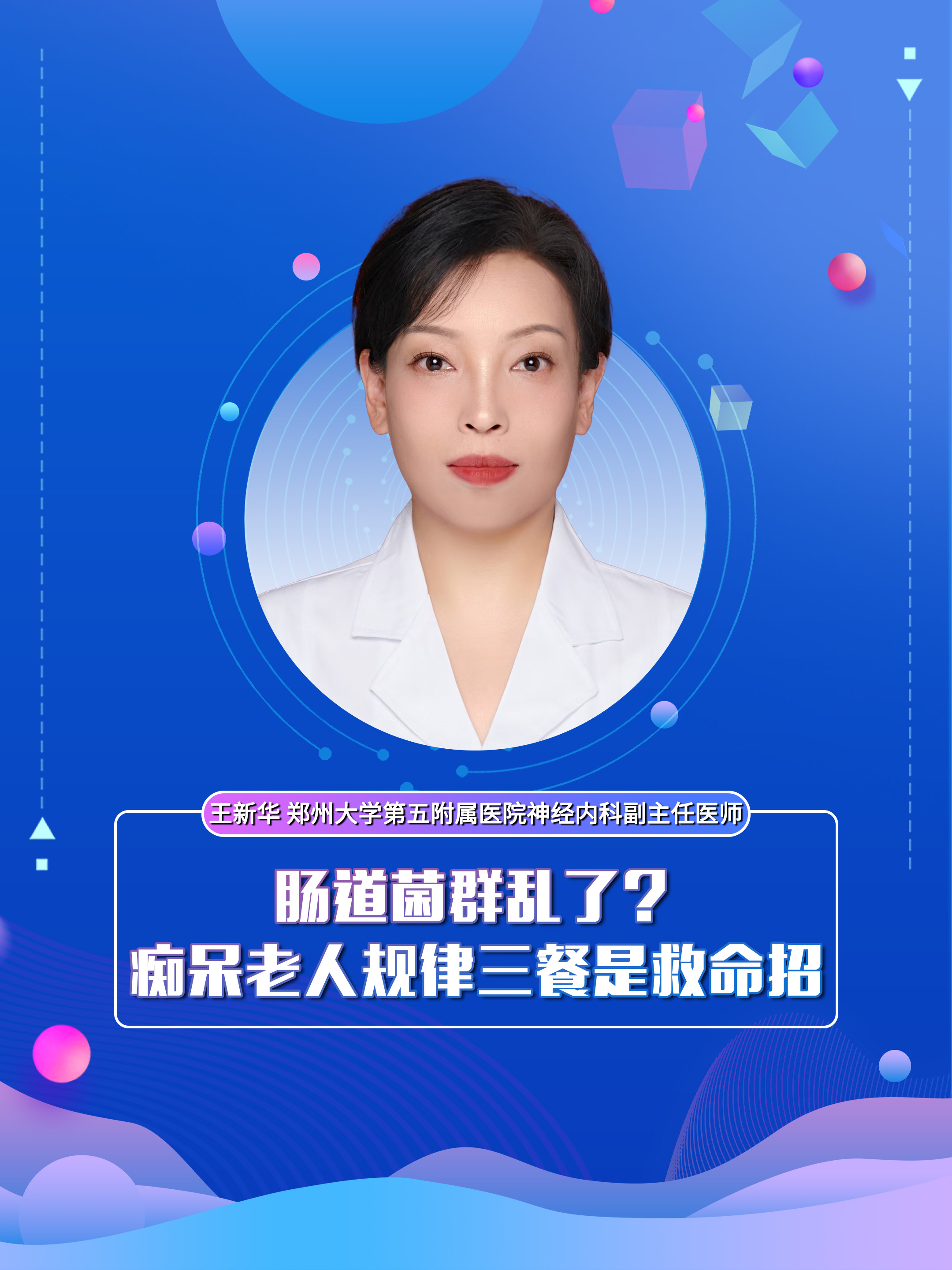 【肠道菌群乱了?痴呆老人规律三餐是救命招】科普专家:王新华——郑州大学第五附属医院神经内科副主任医师