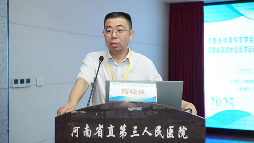 紧接着,学术交流环节正式拉开帷幕。河南省体育科学学会运动医学分会主任委员、河南省医师协会医学运动分会主任委员、河南省直第三人民医院党委书记曹晓强教授,以“老年蹲起障碍CME诊疗策略”为题,开启首场精彩报告。他系统梳理了学科发展脉络,详细介绍了蹲起功能障碍诊疗体系的构建思路和临床应用效果,并结合自己的临床经验,分享了多个典型案例,让与会人员对这一诊疗体系有了更为直观的认识。