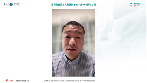会议以线上直播+现场会议的形式召开,本次会议,河南省直三院脊柱微创外科一病区主任、UBE(单侧双通道脊柱内镜)首席专家杨贺军为大会主席,特邀山西省人民医院高刚教授、北京航天中心医院李青松教授、新加坡伊拉莎白医院医疗中心Dr.Pang Hung Wu教授线上参加会议。河南省直三院副院长袁启东,院长助理、脊柱微创外科首席专家周红刚,河南省慈善联合总会·道健基金负责人陈爱云主任,以及来自泰国和巴西的国际脊柱微创外科医生参加开幕式。开幕式由河南省直三院脊柱微创外科副主任申明奎博士主持。