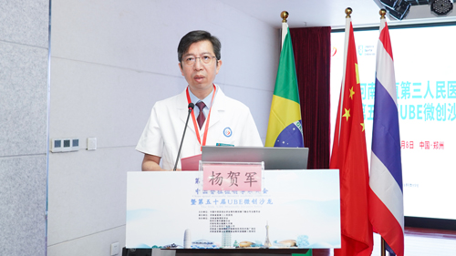 河南省直第三人民医院脊柱微创外科一病区主任、UBE(单侧双通道脊柱内镜)首席专家杨贺军致开幕词