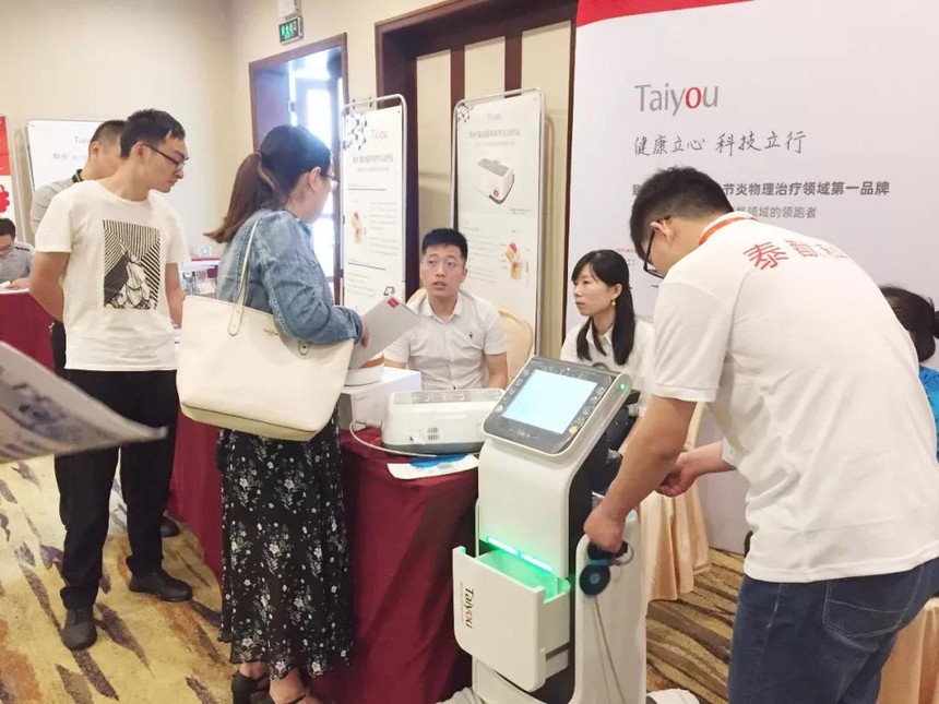 泰猷科技很幸运作为本次骨关节康复论坛的协办单位出席盛会,泰猷科技自成立以来的数年里,一直致力于康复领域的研发创新,泰步复合超声关节炎治疗仪是泰猷科技本阶段的主打科研产品,其将聚焦超声与TENS科学结合,对骨性关节炎患者起到了延缓软骨退变,同时有效缓解关节疼痛的作用,长期使用可保健关节,预防复发,该产品在四川大学华西医院、北医三院等各大三甲医院得到了大量临床应用证实:聚焦超声同步叠加经皮神经电刺激的治疗方式,对于缓解骨性关节炎相关症状的疗效明显优于单一物理因子的干预。